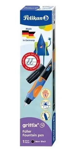 Pióro wieczne Pelikan Griffix to etap 4 i zarazem ostatni w 4-stopniowym systemie nauki pisania opracowanym przez markę Pelikan. Na tym poziomie dziecko posiada już rozwinięty chwyt szczypcowy, potrafi kreślić precyzyjne kształty i stosuje właściwy nacisk podczas pisania. Pióro zostało zaprojektowane z myślą o utrwalaniu tych umiejętności i wprowadzeniu dziecka w świat pisania piórem wiecznym z pełnym komfortem i kontrolą. Stalówka ze stali nierdzewnej, częściowo schowana w obudowie, jest odporna na nacisk i nie wymaga wysiłku gładko sunie po papierze, nie drapiąc i nie przerywając linii. Dziecko może też kontrolować ilość atramentu dzięki specjalnemu okienku w obudowie, a odkręcana nasadka zapobiega przypadkowemu pobrudzeniu dłoni i piórnika. Trójkątna, ergonomiczna i antypoślizgowa strefa chwytu oraz widoczna uśmiechnięta buźka pomagają dziecku w utrzymaniu właściwej pozycji palców i dalszym rozwijaniu umiejętności pisarskich.