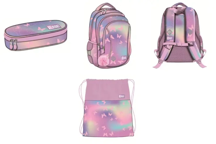 Plecak szkolny St.Right PINK BUTTERFLIES + piórnik + worek motyle