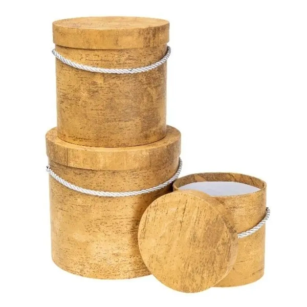 Pudełko Flower Box 3szt drewno żółte ROZETTE