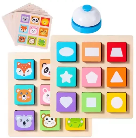 DREWNO GRA ZWIERZĄTKA I KSZTAŁTY Z DZWONKIEM KARTON
