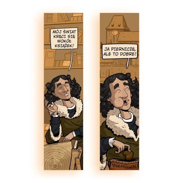 Heliocentryczna, a może raczej książkocentryczna idea kopernikańska nie jest Ci obca? Twój świat również kręci się wokół książek? Chyba mamy zakładkę w sam raz dla Ciebie. Nie pierniczymy, to prawdziwie wyborny gadżet dla każdego mola książkowego! Karton ozdobny perłowy 300g, sztywny, metaliczno-srebrny połysk Wymiary: 50x200mm