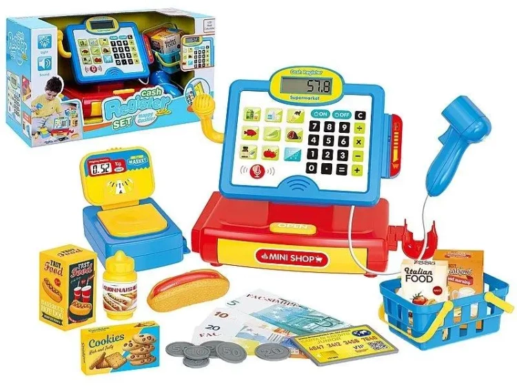 Kasa sklepowa na baterie, wyswietlacz LCD, zakupy, światło, dźwięk; 40x22x17cm, W/B