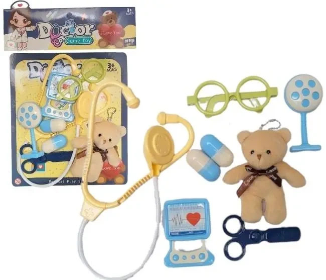 Przedstawiamy fantastyczny zestaw "Mały Doktor", który przeniesie Twoje dziecko w fascynujący świat medycyny i pielęgnacji! Ten bogaty komplet zawiera wszystko, czego potrzeba małemu medykowi: realistyczny stetoskop, stylowe okulary, imitację termometru, bezpieczne nożyczki, a także monitor z bijącym serduszkiem i uroczego pluszowego misia, który z radością będzie przyjmował leki w formie dwóch tabletek. Zabawka doskonale rozwija wyobraźnię, kreatywność oraz empatię, ucząc poprzez zabawę podstawowych zasad dbania o zdrowie i pomagania innym. Wykonany z bezpiecznych i trwałych materiałów, zestaw "Mały Doktor" gwarantuje wiele godzin edukacyjnej i radosnej zabawy. Idealny prezent dla dzieci powyżej 3 roku życia.