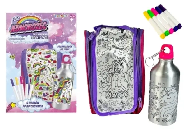 Bidon 500ml z Jednorożcem i torbą do kolorowania - Norimpex
