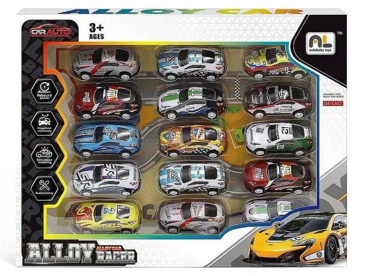 Zestaw 15 autek metalowych; 32x24,5x4,5cm, W/B