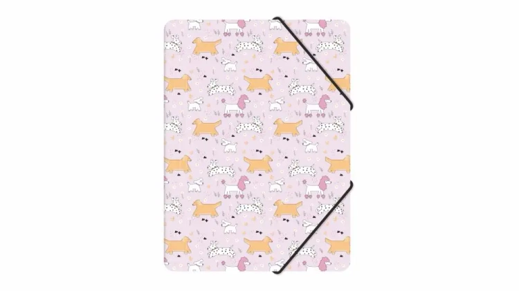 Wykonana ze sztywnego tworzywa PP z pełnym, ozdobnym nadrukiem. W środku znajdują się 3 zakładki zabezpieczające dokumenty przed wypadaniem. Posiada bigowania pozwalające na poszerzenie grzbietu do 2 cm grubości. Zamykana na solidną gumkę. Możliwość personalizacji.