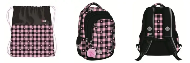 Plecak szkolny St.Right PINK CHECKERED + worek szachowncia czarny