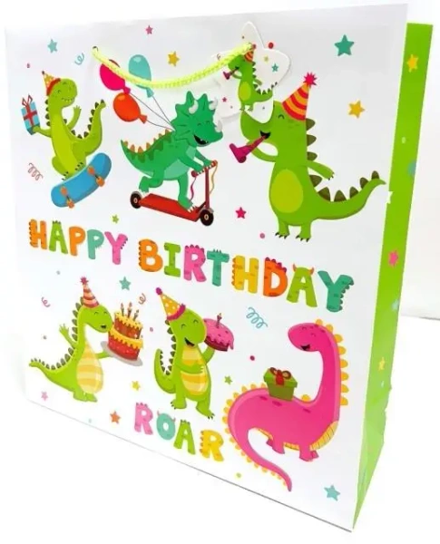 Torebka ozdobna matowa 35x37x12cm Dinozaury - Fresh