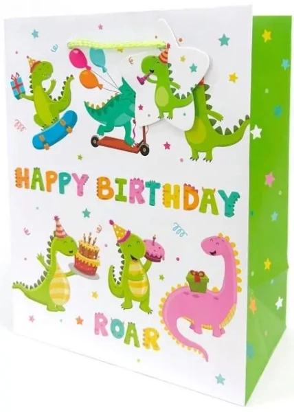 Torebka ozdobna matowa 18x23x10cm Dinozaury - Fresh