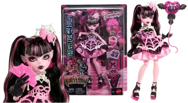 Draculaura wyprawia wielkie przyjęcie urodzinowe, a dla lalek Monster High oznacza to imprezę stulecia W końcu nie co dzień kończy się 1600 lat Jak to uczcić? Oczywiście organizując najbardziej niesamowite przyjęcie urodzinowe w historii. Każda lalka z serii Straszysłodkie urodziny robi potwornie stylowe wrażenie, a w zestawie ma „balon”, zaproszenie, kartkę urodzinową, prezent i inne akcesoria. Dzięki tak wielu uroczym elementom ta lalka jest gotowa bawić się i świętować jak nigdy. Inne lalki są sprzedawane oddzielnie, zależnie od dostępności. Lalki nie stoją samodzielnie. Kolory i elementy dekoracyjne mogą się różnić.