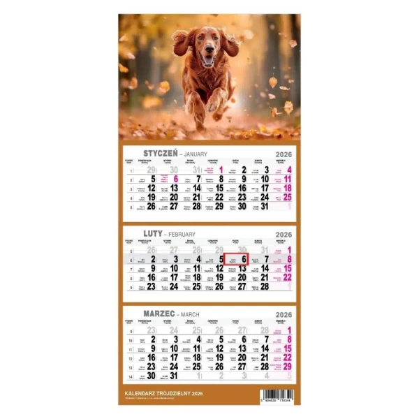 Kalendarz 2026 trójdzielny mały Pies - O-press