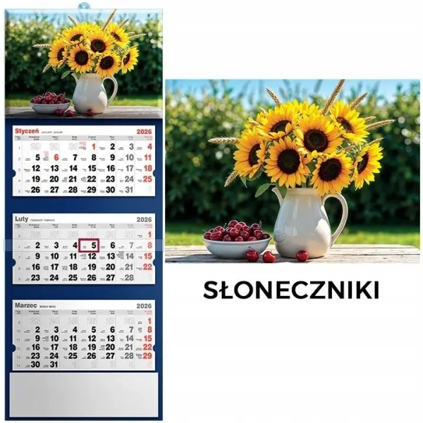 Kalendarz 2026 trójdzielny słoneczniki - Evena
