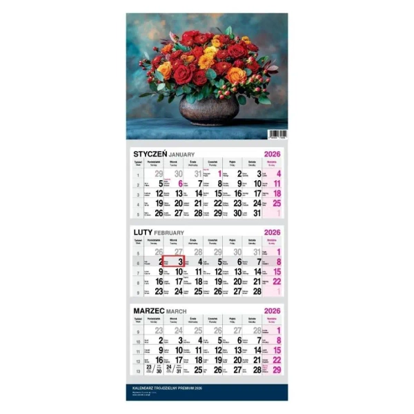 Kalendarz 2026 Trójdzielny Twarda Główka Bukiet - O-press
