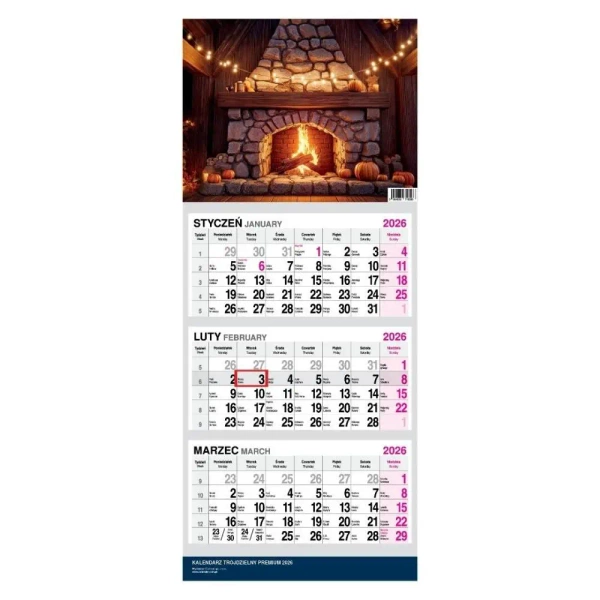 Kalendarz 2026 Trójdzielny Twarda Główka Kominek - O-press