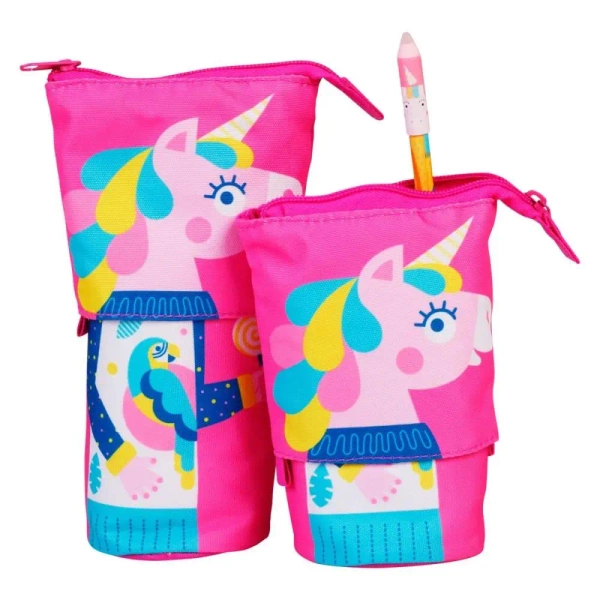 Piórnik-saszetka o wysuwanej strukturze, posiadający jedną komorę, do sprzedaży bez załączonego wyposażenia. Kształt piórnika jest elastyczny - można go dowolnie dostosować do własnych preferencji. Ciekawą funkcją jest możliwość przesuwania górnej części piórnika w celu regulacji jego wielkości.