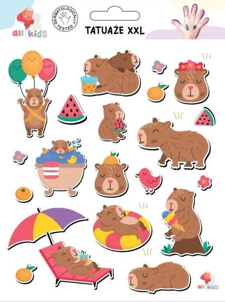 Tatuaże zmywalne dla dzieci Kapibara wakacyjna XXL - All4Kids