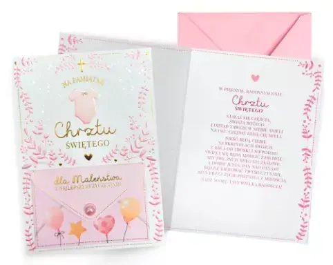 Karnet na chrzest, różowy