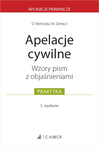 • część praktyczna – 14 szczegółowo opracowanych wzorów apelacji w różnych typach spraw, m.in. o zapłatę, eksmisję, zadośćuczynienie czy ochronę dóbr osobistych;