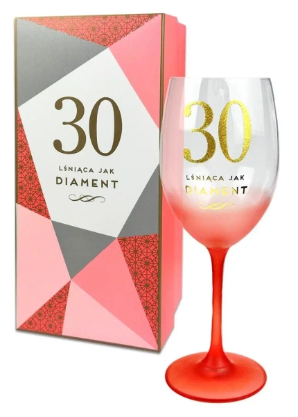 Urodzinowy kieliszek z okazji urodzin zapakowany w estetyczne , kolorowe pudełko.