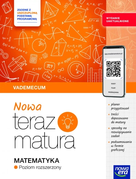 To uaktualnione vademecum z serii NOWA Teraz matura będzie przydatne dla wszystkich uczniów przygotowujących się do matury z matematyki na poziomie rozszerzonym. Pomoże skutecznie uporządkować wiedzę, przećwiczyć różne typy zadań i przygotować się do egzaminu z matematyki 2026 zgodnie z najnowszymi wymaganiami CKE i uszczuploną podstawą programową.