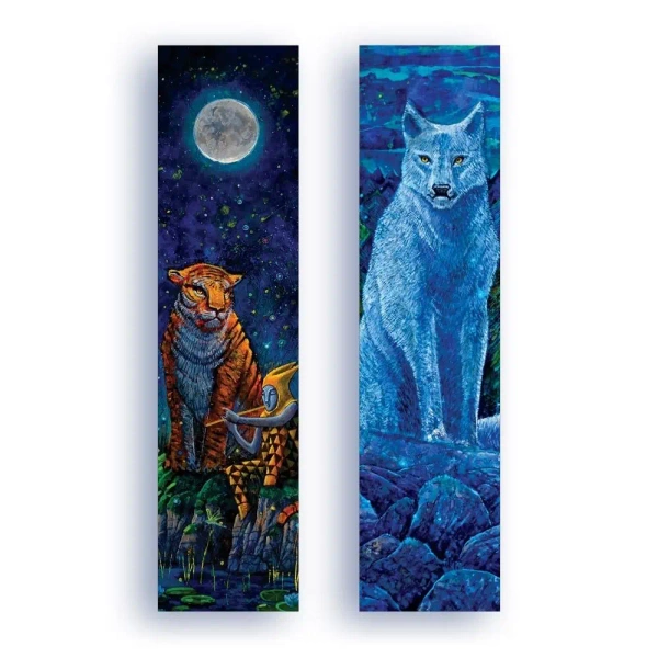 Dwa piękne obrazy Rocha Urbaniaka teraz na wyjątkowej zakładce! Dla efektu metaliczno-srebrny połysk! Karton ozdobny perłowy 300g, sztywny, metaliczno-srebrny połysk Wymiary: 50x200mm
