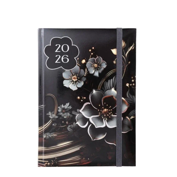 OKŁADKA: druk 4 kolory, błyszcząca ze srebrzeniem roku, gumka 6mm