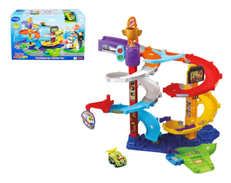 Zakręcony, wielopoziomowy Wyścigowy Wielki Tor to obowiązkowa zabawka dla każdego fana autek z serii Tut Tut Autka®! Możliwość złożenia torów w dwie kombinacje — podwójny tor wyścigowy lub wieża mająca ponad 90 cm wysokości!