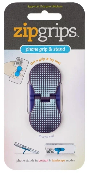 ZipGrip to ultracienki, innowacyjny uchwyt na palce i stojak do telefonu, pasujący do wszystkich typów telefonów, który przymocowuje się bezpośrednio do tylnej części telefonu (lub etui). Jest on bardzo łatwy w montażu. Jest wygodny do trzymania, idealny do robienia selfie oraz zapobiegają przypadkowemu upuszczeniu smartfona. Może również służyć jako stojak do telefonu zarówno w pozycji pionowej, jak i poziomej. ZipGrip może być zamontowany do kratki wentylacyjnej w Twoim samochodzie. Gdy nie jest używany, można go całkowicie schować i jest tak cienki, że prawie nie zwiększa objętości smartfona w kieszeni lub torbie. Doskonały prezent dla użytkowników telefonów. Opakowanie produktu zostało wykonane w 100% z materiałów pochodzących z recyklingu.