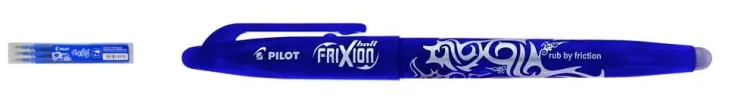 Pisz płynnie piórem kulkowym Frixion, usuwaj błędy, ogrzewając je za pomocą silikonowej końcówki i poprawiaj je szybko i sprawnie! Tusz Metamo, wrażliwy na zmiany temperatury, został opatentowany przez Pilot'a. Dzięki niemu PILOT zrewolucjonizował rynek artykułów piśmiennych!