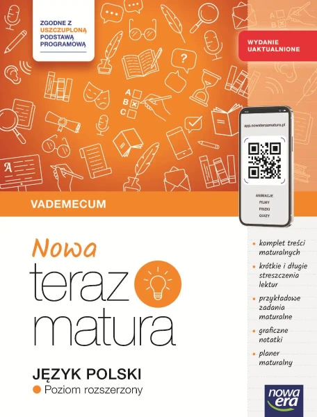 Sprawdzone vademecum, które łączy wiedzę, zadania, praktykę egzaminacyjną i wsparcie cyfrowe. To publikacja, która odpowiada na nowe wymagania i realne potrzeby maturzystów - zgodna z uszczuploną podstawą programową, w uaktualnionej wersji.