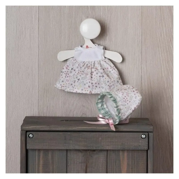 Urocza bawełniana, rozkloszowana sukieneczka w delikatny roślinny wór została zaprojektowana specjalnie dla lalek hiszpańskich Bomboncin i Tom o wysokości 20 cm. Designem nawiązuje do popularnej kolekcji ASI Dreams Cloe. W komplecie wiązana satynową tasiemką czapeczka wykończona falbanką w miętową kratkę. Wygodne zapięcie na rzep umożliwia łatwe zdjęcie i nałożenie ubranka. Outfit na kartonowym wieszaczku z logo marki ASI zapakowany jest w foliowe opakowanie. Uzupełnij kolekcję ubranek lalek hiszpańskich Bomboncin i uatrakcyjnij dziecku zabawę! Wszystkie ubranka dla lalek marki ASI są w całości szyte w Hiszpanii.