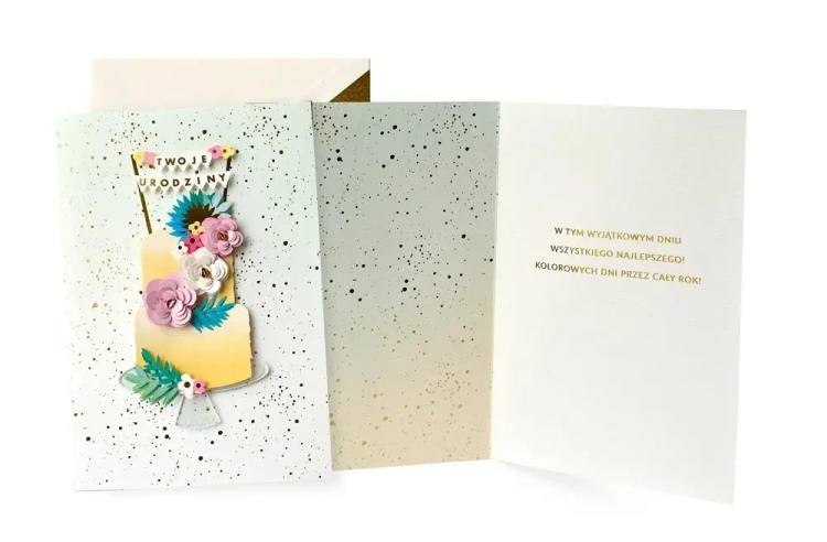 Karnet SCH-010 Urodziny Kartka B6 z ozdobnej serii Signature Cards - nieduża, ale robi wrażenie dzięki atrakcyjnej kolorystyce i ciekawym, przestrzennym zdobieniom. Cechy szczególne: wielkość: B6, 16.6 x 11.7 cm po złożeniu, koperta: dopasowana w zestawie, zdobiona metaliczną folią zdobienia: kolorowe, różnorodne, bogate (w zależności od wzoru: przyklejane przestrzenne dekoracje, metaliczne folie, tłoczenia itp.), okazja: urodziny