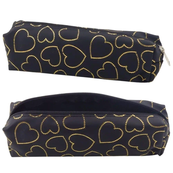 Piórnik jednokomorowy złote serca czarny - Leantoys