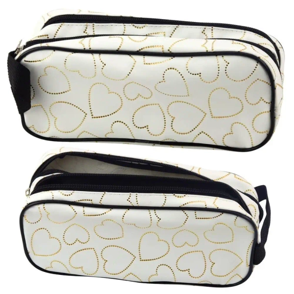 Piórnik dwukomorowy złote serca biały - Leantoys