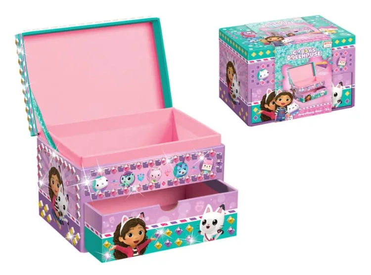 Pudełko do zdobienia na biżuterię Koci Domek Gabi. Udekoruj pudełko diamencikami i metalowymi kształtami z pianki.