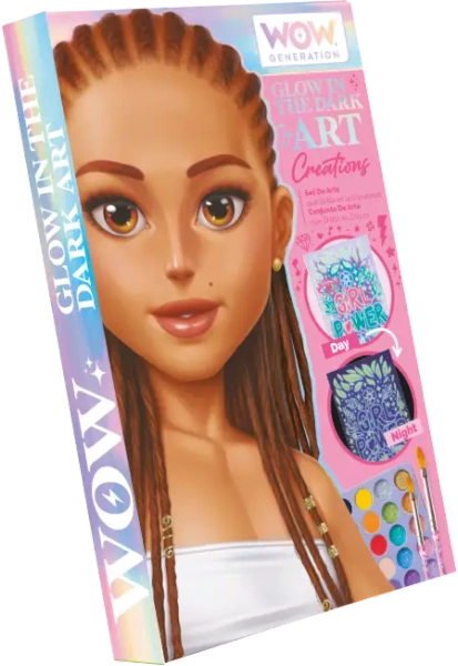 "WOW Glow Art Pad - Maluj w dzień, świeć w nocy!Niech Twoja wyobraźnia świeci nawet w nocy!Dzięki Glow in the Dark Activity Pad wszystko, co musisz zrobić, to pomalować, pozostawić do wyschnięcia... i zgasić światło, aby zobaczyć, jak Twój rysunek ożywa! Co zawiera ten magiczny zestaw?12 ilustrowanych arkuszy gotowych do wypełnienia kolorem10 metalicznych akwareli ? dla błyszczącego dotyku10 zwykłych akwareli w intensywnych kolorach1 arkusz samoprzylepnych klejnotów do dekoracji 2 pędzle w różnych rozmiarach Maluj, dekoruj i pozwól swojej wyobraźni świecić w ciemności!Idealne na kreatywne popołudnia, magiczne prezenty lub zajęcia, które zaskakują za każdym pociągnięciem pędzla. Idealny dla dziewczynek, które kochają kolory, fantazję i sztukę, która świeci w stylu WOW".