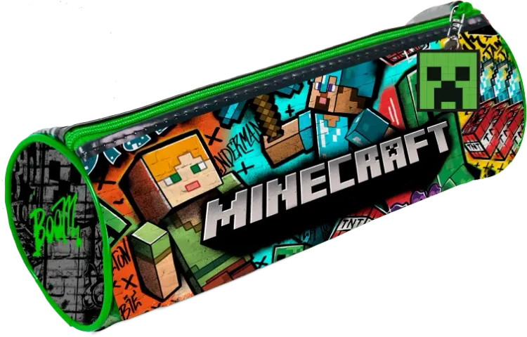 " Okrągła saszetka Minecraft - łatwa do przenoszenia, gotowe na wszystko Tazystko Ta22-centymetrowa saszetka jest mała, tak... ale ma wystarczająco dużo miejsca, aby pomieścić WSZYSTKIE twoje rzeczy!Ołówki, markery, długopisy... a nawet ten sekretny przedmiot, o którym wiesz tylko Ty Wykonane, aby wytrzymać codzienne wyzwania. Wykonana z PVC i poliestru, jest trwała, łatwa do czyszczenia i idealna do zabrania ze sobą do szkoły, na zabawę lub gdziekolwiek jesteś - z ekskluzywnymi detalami dla prawdziwych fanów!Silikonowy ściągacz z postacią z gry Minecraft jest natychmiast rozpoznawalny - profesjonalny akcent, który sprawi, że będziesz w 100% pikselowym graczem!"