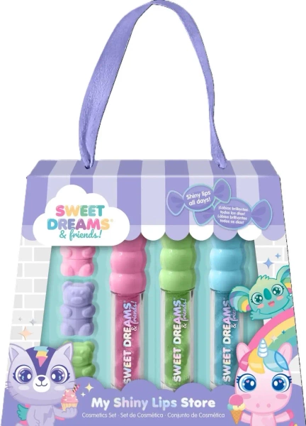 „Dzięki temu kompletnemu zestawowi od Sweet Dreams & Friends będziesz mieć wszystko, czego potrzebujesz, aby mieć lśniące, zadbane usta przez cały dzień. Zainspirowany magicznym światem Sweet Dreams, każdy produkt towarzyszy Ci ze stylem i słodyczą w każdej odsłonie. Idealny do wyrażenia swojego stylu i utrzymania delikatnych i lśniących ust.Co zawiera ten zestaw?3 błyszczyki zapewniające świetliste i zabawne wykończenie.3 balsamy do ust w kształcie misia, które nawilżają i chronią usta”.