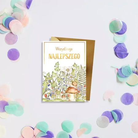 Mini karnet wraz z kopertą zapakowany indywidualnie w opakowanie foliowe.