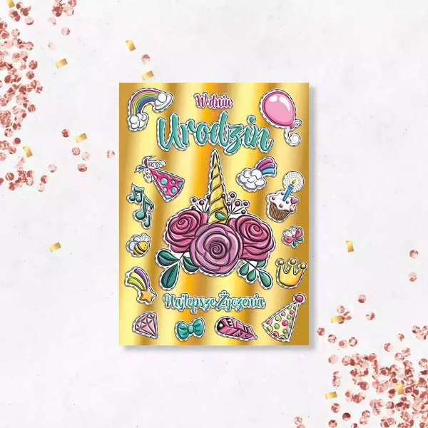 Karnet okolicznościowy w formacie b6 w zestawie z kopertą. Złocony i tłoczony.