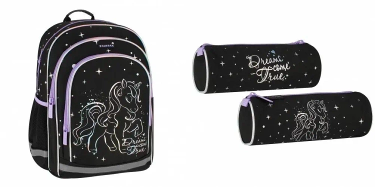 Plecak składa się z 1 dużej komory i 2 obszernych przednich kieszeni, 2 boczne wzmocnione kieszenie siatkowe na butelkę z napojem, wytrzymałe zamki błyskawiczne, ergonomiczne plecy i szelki ,plecy z systemem wentylacji dla większego komfortu, grube, miękkie szelki chronią ramiona, regulowane szelki pozwalają dopasować plecak do wzrostu i budowy ciała, uchwyt powlekany gumą pozwalając zawiesić plecak na wieszaku lub wygodnie nosić go w ręce, odblaskowe paski umieszczone na szelkach, bocznych kieszeniach oraz z przodu zwiększające widoczność plecaka w nocy (bezpieczeństwo dziecka). Plecak w kolorze czarnym z dodatkiem fioletu i holografem. Wygodny i funkcjonalny plecak szkolny STARPAK Unicorn holograf. Użytkowanie takiego plecaka to czysta przyjemność. Zapoznaj się również z innymi produktami STARPAK dedykowanymi dzieciom! Wykonany z trwałego materiału wykończonego elementami odblaskowymi dla większego bezpieczeństwa. Plecak jest wyrobem tekstylnym. Przeznaczony dla dzieci w wieku: 3+. Wymiary produktu (wys. x szer. x gł.) [cm]: 40x30x20, waga produktu [kg]: 0,63 kg. Plecak pakowany w folię. Karton 12 szt.