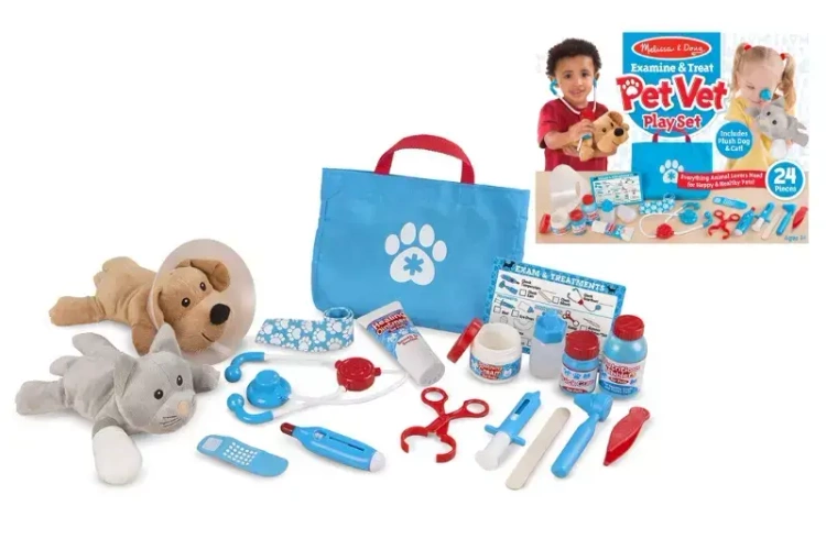 Melissa & Doug Weterynarz z pluszowymi zwierzątkami to zestaw, który daje młodym miłośnikom zwierząt okazję do zabawy w opiekę. Maluchy znajdą tutaj wszystkie potrzebne akcesoria do badania i leczenia czworonogów.
