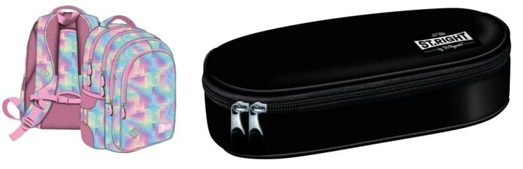 Plecak szkolny St. Right PASTEL PIXEL + piórnik + worek różowy