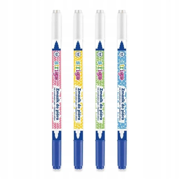 Klasyczny i niezastąpiony zmazik do pióra w niebieskim kolorze. Stanowi idealny zestaw do codziennej pracy! Uniwersalność w jednym miejscu. Jeśli popełnisz błąd, to biała strona pomoże wymazać tuszu atramentowy, natomiast niebieska służy do późniejszej poprawy napisu.
