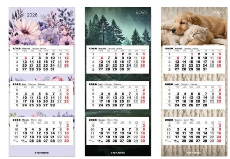 Kalendarz 2026 ścienny trójdzielny 31x70,5cm mix - Top 2000