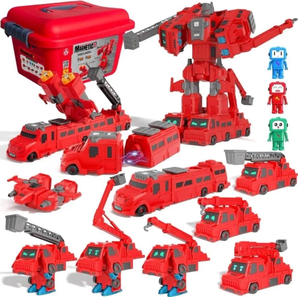 Niesamowity Zestaw Magnetycznych Klocków "SUPER ROBOT STRAŻACKI" - Bohater w Akcji! Przygotuj się na godziny ekscytującej, kreatywnej zabawy z naszym innowacyjnym zestawem magnetycznych klocków, który pozwala na budowę potężnych pojazdów ratunkowych i transformację w imponującego robota! Ten zestaw to spełnienie marzeń dla każdego małego bohatera, który pragnie wcielić się w rolę strażaka i ratować świat. Co wyróżnia nasz magnetyczny zestaw? Magnetyczne Łączenie - Szybka Transformacja i Stabilność! Sercem tego zestawu jest genialny system magnetycznego łączenia. Każdy element wyposażony jest we wbudowane magnesy, co sprawia, że klocki łączą się ze sobą w mgnieniu oka - łatwo, precyzyjnie i stabilnie! Dziecko z łatwością stworzy potężne konstrukcje, a ich trwałość zapewni długie godziny intensywnej zabawy. Koniec z frustracją przy rozpadających się konstrukcjach! Transformacja "Bohater w Akcji" - Pojazdy i Gigantyczny Robot! Ten zestaw to prawdziwy majstersztyk inżynierii i zabawy! Pozwala na zbudowanie różnorodnych pojazdów straży pożarnej (wozy, drabiny, pojazdy ratunkowe), które następnie można połączyć w jednego, imponującego, czerwonego robota-transformera! To niesamowite połączenie wielu zabawek w jednej, gwarantujące mnóstwo możliwości fabularnych i rozwojowych. Rozwijająca Zabawa Pełna Akcji: Zabawa naszymi magnetycznymi klockami to nie tylko frajda, ale i efektywna nauka poprzez działanie! Zestaw wspiera rozwój: o Kreatywności i wyobraźni: Dziecko tworzy własne scenariusze ratunkowe i buduje unikalne maszyny. o Zdolności manualnych i koordynacji: Precyzyjne łączenie magnetycznych elementów. o Logicznego myślenia i rozwiązywania problemów: Planowanie konstrukcji i transformacji. o Zdolności narracyjnych: Wymyślanie historii o dzielnych strażakach i ratujących robocie. Wysoka Jakość i Bezpieczeństwo: Wykonane z trwałego, nietoksycznego tworzywa sztucznego w intensywnym czerwonym kolorze, klocki są bezpieczne dla dzieci i odporne na intensywne użytkowanie. Gładkie krawędzie i solidne wykonanie gwarantują długie lata niezawodnej zabawy. Praktyczne Opakowanie - Gotowość do Akcji! Cały zestaw zapakowany jest w solidne, czerwone pudełko z rączką, które ułatwia przechowywanie wszystkich elementów i utrzymanie porządku. Dzięki niemu, mały strażak może zabrać swój sprzęt na każdą misję! Idealny Prezent dla Małego Bohatera: Szukasz prezentu, który rozpali wyobraźnię i zapewni długie godziny ekscytującej zabawy? Ten zestaw magnetycznych klocków to idealny wybór na urodziny, święta, Dzień Dziecka czy każdą inną okazję dla chłopców i dziewczynek zafascynowanych pojazdami ratunkowymi, robotami i budowaniem! Zestaw zawiera: Wysokiej jakości magnetyczne klocki umożliwiające budowę wielu pojazdów strażackich. Elementy do transformacji w imponującego robota-strażaka. Praktyczne, czerwone pudełko do przechowywania z rączką. Dodatkowe, małe figurki robotów (widoczne na zdjęciu), które mogą być towarzyszami misji. Ilość elementów - 24 Wielkość kuferka 29x22x19
