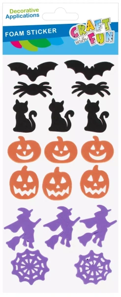 Zalety produktu Miękkie piankowe ozdoby od CRAFT WITH FUN idealne do zdobienia kartek okolicznościowych, zaproszeń czy pamiętników, ozdoby posiadają taśmę samoprzylepną. Świetnie sprawdzą się również jako element dekoracyjny do pokoju dziecka Żywe kolory, różnorodne kształty i wzory dają praktycznie nieskończoną ilość możliwości ich stosowania. Używaj tych produktów w połączeniu z innymi akcesoriami oraz kompletami z serii CRAFT WITH FUN Zawartość zestawu 18 szt. naklejka Eva Dynia, Kot, Nietoperz, Pająk, Czarownica. Piankowe ozdoby mają różne zastosowanie. Wszystkie elementy wykonane z pianki Eva. Wymiary/waga wymiary opakowania szer. x wys. cm 12x26, waga produktu w opakowaniu kg 0,008 kg. Produkt przeznaczony dla dzieci w wieku 3 . Pakowany w woreczek z zawieszką. Iner 12 szt. Karton zbiorczy 144 szt. br / br / DANE GPSR br / Euro- Trade Sp. Z o.o. Sp.K. br / Władysława Łokietka 155 31-263 Kraków br / 48126144200 br / biuro euro-trade.pl CN 5602900000 br / Artykuł dla hobbystów, artystów i entuzjastów rękodzieła. Ostrzeżenia Nieodpowiednie dla dzieci poniżej 3 lat. Zawiera małe elementy lub istnieje możliwość oddzielenia małych elementów. Ryzyko połknięcia, zadławienia, uduszenia. Używać zgodnie z przeznaczeniem. Proszę zachować to opakowanie, gdyż zawiera ważne informacje. br / Nie dotyczy