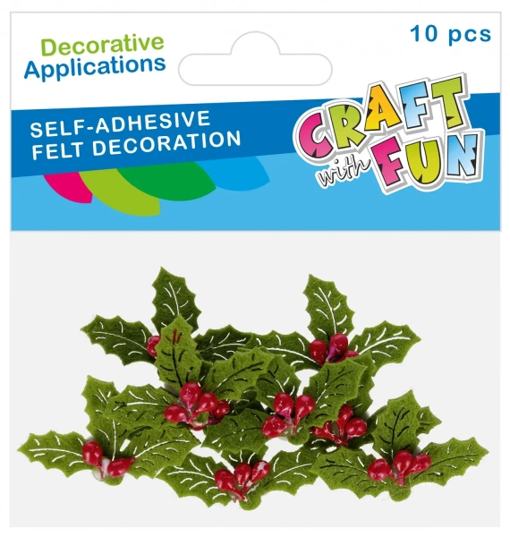 Ozdoba Dekoracyjna Filcowa Samoprzylepna Ostrokrzew 10szt. Craft with Fun 567255