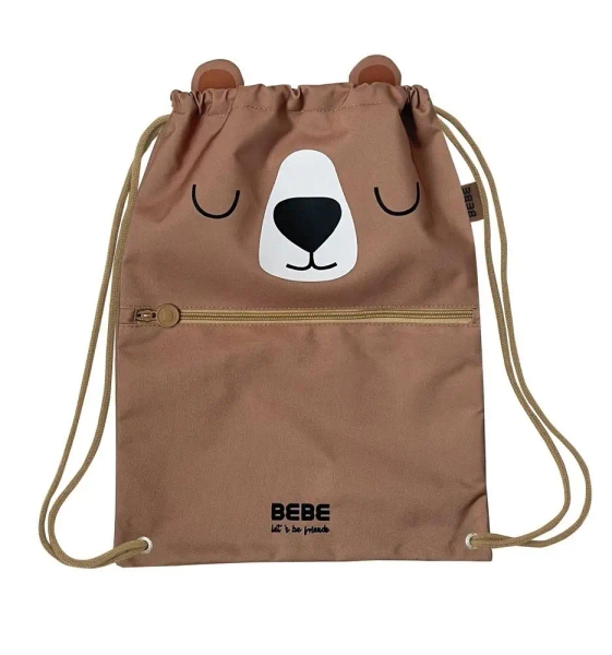 Praktyczny worek z kieszonką na zamek to idealne rozwiązanie na zajęcia sportowe, wycieczki czy codzienne aktywności! Wyposażony w zewnętrzną kieszonkę na suwak na drobiazgi oraz wszywkę do podpisania, co ułatwia identyfikację. Kompaktowe wymiary (32x42 cm) zapewniają wygodę noszenia, a uroczy wzór misia z kolekcji BEBE Friends, ozdobiony wystającymi uszkami, nadają mu wyjątkowego charakteru.