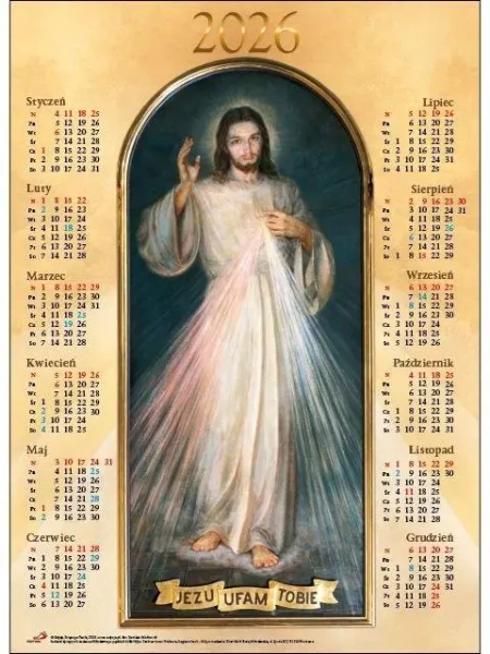 Chcesz dobrze zaplanować 2026 rok? Skorzystaj z kalendarza plakatowego z wizerunkiem Jezusa Miłosiernego. Możesz być pewien, że On, razem z Tobą, chętnie zajmie się wszystkim i poprowadzi Cię z miłością przez plany, działania i obowiązki.
